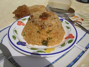 PRIPRAVA: Na olju prepražimo sekljano čebulo, dodamo dobro očiščene na koščke narezane smrčke in jih nekaj minut dušimo, zalijemo 1 dl jušne osnove solimo popramo, dodamo drobno narezano papriko in dušimo približno 10 minut, nato dodamo riž, Paradižnikovo mezgo sekljani peteršilj (grah) če je sveži, drugače če je iz konzerve ga damo nekaj minut pred koncem ko je riž kuhan, zalijemo z ostalo |